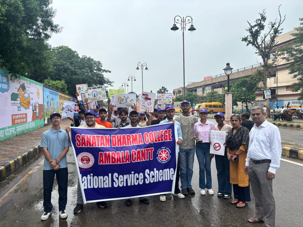 अंबाला: सनातन धर्म कॉलेज की राष्ट्रीय सेवा योजना इकाइयों द्वारा ‘नशा मुक्त भारत अभियान’ के अंतर्गत एक विशाल रैली का आयोजन किया गया। यह आयोजन लोगों को नशे के प्रति जागरूक करने के उद्देश्य से किया गया। प्राचार्य डॉ अल्का शर्मा ने बच्चों को प्रोत्साहित करते हुए कहा कि युवा वर्ग को नशे से दूर रहकर राष्ट्र निर्माण में योगदान देना चाहिये। तत्पश्चात उन्होंने रैली को हरी झंडी दिखाकर रवाना किया। इस दौरान स्वयंसेवकों ने बढ़-चढ़कर भागीदारी की और पूरे जोश के साथ नशे के विरुद्ध नारे लगाए। स्वयंसेवकों ने हाथों में नशा मुक्ति संबंधी पोस्टर लेकर आमजन को नशे के दुष्प्रभावों के प्रति जागरूक किया। रैली के दौरान बच्चों ने नशे के विरुद्ध नारे लगाते हुए नशे को जड़ से समाप्त करने का संदेश भी दिया। रैली को सफल बनाने में एनएसएस कार्यक्रम अधिकारी डॉ. मोहित बिन्दलिश, डॉ. आरती, डॉ. गिरधर गोपाल के साथ डॉ प्रेम सिंह, डॉ जोगिन्दर, ज़ीनत मदान, कवलीन, डॉ रेणु शर्मा सहित अनेक शिक्षकगण एवं स्वयंसेवक प्रिया, अनुराग, भ्रमपाल, तरुण, कबीर, कशिश और खुशी की विशेष भूमिका रही।
