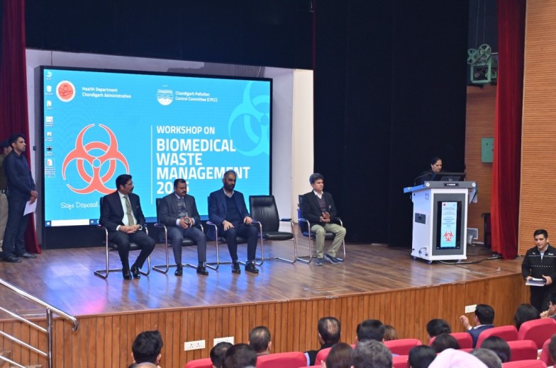चंडीगढ़: चंडीगढ़ प्रदूषण नियंत्रण समिति (सीपीसीसी) ने स्वास्थ्य विभाग, चंडीगढ़ प्रशासन के सहयोग से शुक्रवार को सेक्टर-16 स्थित गवर्नमेंट मल्टीस्पेशियलिटी हॉस्पिटल में बायोमेडिकल वेस्ट मैनेजमेंट पर कार्यशाला का आयोजन किया। कार्यक्रम की थीम थी “सुरक्षित निस्तारण, सुरक्षित जीवन”, जिसका उद्देश्य बायोमेडिकल कचरे के सुरक्षित और वैज्ञानिक प्रबंधन पर ध्यान केंद्रित करना था। कार्यक्रम के मुख्य अतिथि, पर्यावरण सचिव एवं स्वास्थ्य सचिव, मनदीप सिंह बराड़ ने कहा कि बायोमेडिकल वेस्ट मैनेजमेंट केवल नियमों का पालन नहीं, बल्कि स्वास्थ्य संस्थाओं और कर्मियों का नैतिक और व्यावसायिक दायित्व भी है। उन्होंने स्वास्थ्य संस्थानों और नियामक एजेंसियों के बीच मजबूत साझेदारी और प्रशिक्षण की आवश्यकता पर बल दिया।