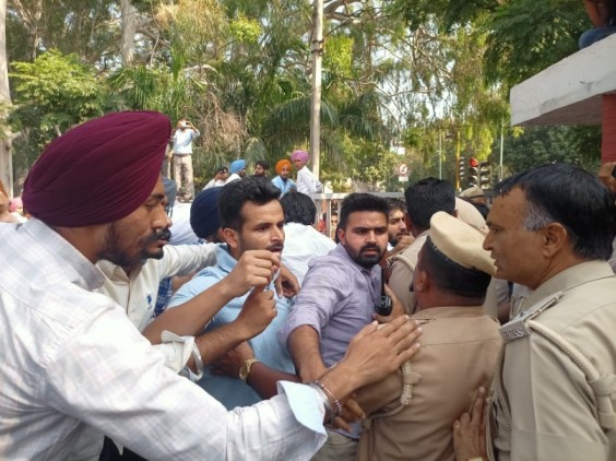 चंडीगढ़: पंजाब यूनिवर्सिटी (पीयू) में सोमवार को विरोध कर रहे छात्रों ने पीयू प्रशासन पर सीधा वार करते हुए वीसी ऑफिस चौक से सेक्टर-15 सामने स्थित यूनिवर्सिटी गेट नंबर-2 तक मार्च निकाला। गेट पर पहुंचते ही छात्रों और पुलिस के बीच तीखी धक्का-मुक्की हुई। हालात ऐसे बने कि छात्रों ने गेट को तोड़कर बंद कर दिया। इससे यूनिवर्सिटी कैंपस के अंदर और बाहर दोनों ओर ट्रैफिक जाम की स्थिति बन गई। विरोध कर रहे छात्रों में पीयूसीएससी के जनरल सेक्रेटरी अभिषेक दागर, जो सोमवार को भूख हड़ताल के 6वें दिन थे, के साथ ही काउंसिल के वाइस प्रेसिडेंट अश्मीत सिंह, सेक्रेटरी मोहित मंडेराना व छात्र नेता जोबनप्रीत, सारा, परबजोत सिंह गिल और मनकीरत सिंह मान शामिल रहे। प्रदर्शनकारी छात्रों का विरोध विवादित एफिडेविट लागू करने और केंद्र सरकार द्वारा पीयू सीनेट भंग करने के फैसले को लेकर जारी है।
