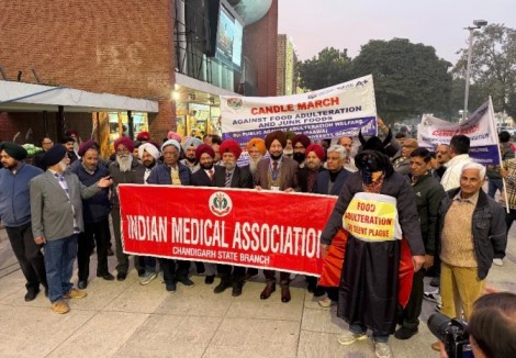 चंडीगढ़: पब्लिक अगेंस्ट एडल्टरेशन वेलफेयर एसोसिएशन (PAWA) ने देश भगत यूनिवर्सिटी (DBU) के साथ मिलकर चंडीगढ़ के सेक्टर-17 के मेन मार्केट में एक बड़ा कैंडल मार्च निकाला। यह मार्च लोगों को खाने की चीजों में बढ़ती मिलावट और अल्ट्रा-प्रोसेस्ड फूड (UPF) के नुकसान के खिलाफ जागरूक करने के लिए निकाला गया।