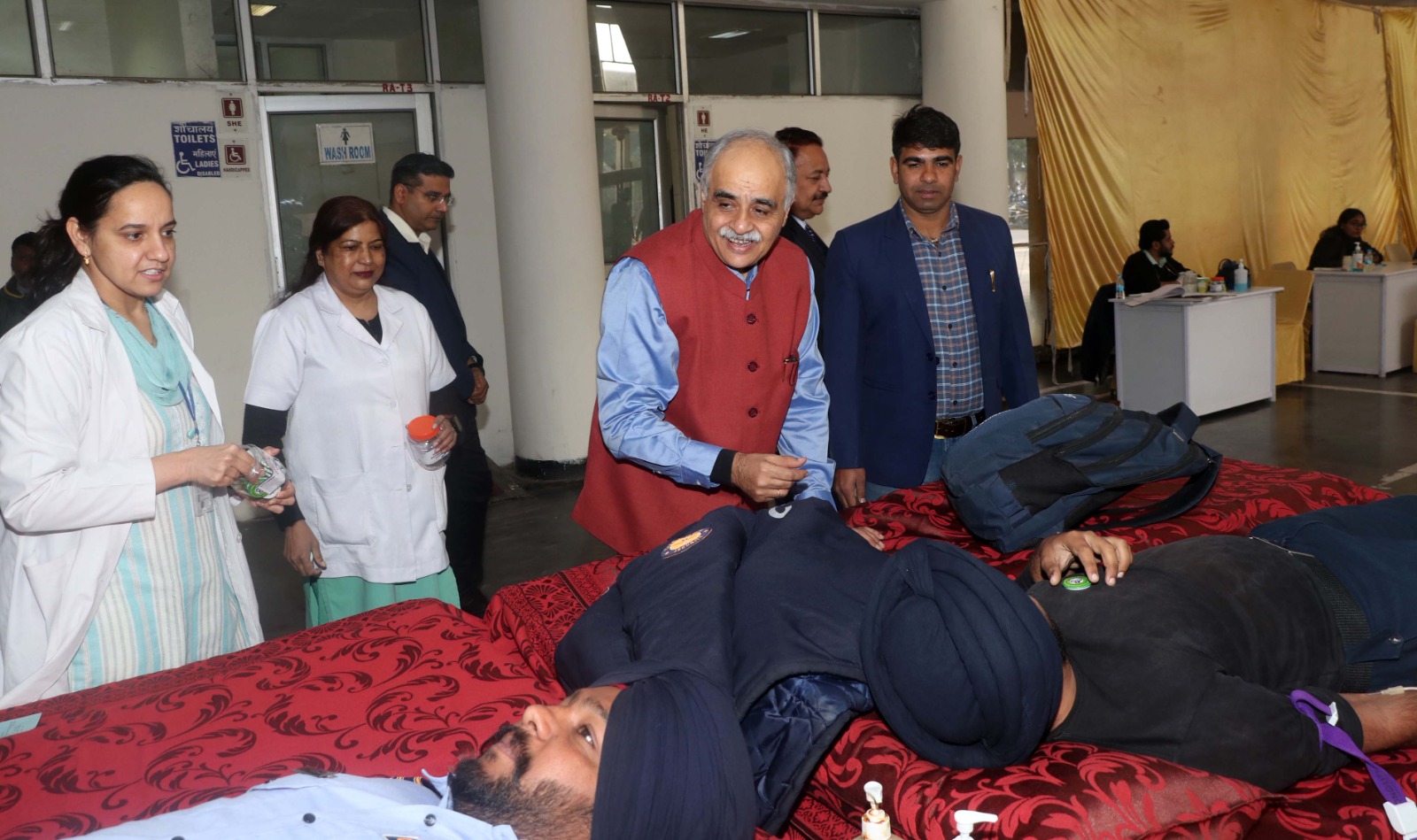 चंडीगढ़ : गणतंत्र दिवस की पूर्व संध्या पर पोस्टग्रेजुएट इंस्टीट्यूट ऑफ मेडिकल एजुकेशन एंड रिसर्च (पीजीआईएमईआर), चंडीगढ़ के सुरक्षा विभाग द्वारा 22वें रक्तदान शिविर का आयोजन किया। शिविर का उद्घाटन माननीय निदेशक पीजीआईएमईआर चंडीगढ़, प्रोफेसर डॉ विवेक लाल ने किया। चिकित्सालय अधीक्षक, उप निदेशक (प्रशासन), पीजीआईएमईआर के अन्य वरिष्ठ अधिकारी और चंडीगढ़ कांग्रेस के अध्यक्ष, सीआरपीएफ, सीआईएसएफ के कमांडेंट, मुख्य अभियंता, यूटी। चंडीगढ़, राज्यपाल के एडीसी, चंडीगढ़ के सांसद के ओएसडी, चंडीगढ़ व्यापार मंडल के सदस्य आदि। भी इस अवसर पर उपस्थित हुए और रक्तदाताओं से मुलाकात की तथा इस सामाजिक कार्य के लिए संस्थान के सुरक्षा विभाग के प्रयासों की सराहना की तथा साथ ही महान नेताजी सुभाष चंद्र बोस को इस तरह से याद करते हुए एक देशभक्तिपूर्ण भाव प्रदर्शन किया। इस आयोजन में सुरक्षा विभाग के अधिकारी एवं कर्मचारी उपस्थित रहे।