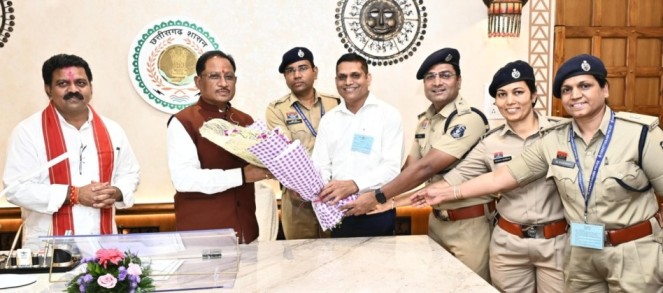रायपुर: छत्तीसगढ़ में आज यानी मंगलवार के दिन मुख्यमंत्री विष्णु देव साय से विधानसभा स्थित कार्यालय में राज्य पुलिस सेवा के अधिकारियों ने सौजन्य भेंट की। पुलिस अधिकारियों ने मंत्रिपरिषद की बैठक में वर्ष 2005 से 2009 बैच तक के अर्हकारी सेवा अवधि पूर्ण कर चुके अधिकारियों को वरिष्ठ प्रवर श्रेणी वेतनमान प्रदान किए जाने के निर्णय हेतु आभार व्यक्त किया। इस अवसर पर उप मुख्यमंत्री विजय शर्मा भी उपस्थित थे। उल्लेखनीय है कि 11 जुलाई 2025 को आयोजित मंत्रिपरिषद की बैठक में राज्य पुलिस सेवा संवर्ग के समुचित प्रबंधन हेतु 30 सांख्येतर पदों का सृजन करते हुए वरिष्ठ प्रवर श्रेणी वेतनमान प्रदान करने का निर्णय लिया गया। यह निर्णय उन अधिकारियों के लिए लिया गया है जिन्होंने सेवा में निर्धारित अर्हता अवधि पूर्ण कर ली है। इस अवसर पर अतिरिक्त पुलिस अधीक्षक लखन पटले, कीर्तन राठौर, अनंत साहू, डॉ. संगीता माहेलकर एवं श्रीमती प्रज्ञा मेश्राम उपस्थित थीं।