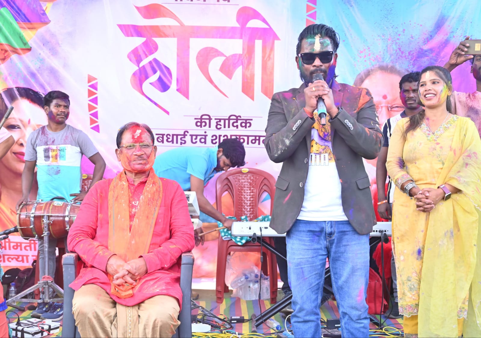रायपुर : मुख्यमंत्री विष्णु देव साय ने होली के रंगों में सराबोर अपने गृह ग्राम बगिया में ग्रामीणों के साथ आत्मीयता से होली का पर्व मनाया। मुख्यमंत्री कैम्प कार्यालय बगिया में सुबह से ही बड़ी संख्या में लोग उनसे मिलने और होली की शुभकामनाएं देने पहुंचे। मुख्यमंत्री ने सभी का गर्मजोशी से स्वागत किया, गुलाल लगाया और पर्व की शुभकामनाएं दीं। मुख्यमंत्री साय ने कहा कि होली केवल रंगों का नहीं, बल्कि प्रेम, सौहार्द्र और आपसी मेलजोल का उत्सव है। यह पर्व हमें हर भेदभाव भूलाकर एकता और भाईचारे का संदेश देता है। उन्होंने ग्रामीणों से संवाद करते हुए उनकी समस्याओं और आवश्यकताओं पर भी चर्चा की। होली के इस उल्लासमय अवसर पर ग्रामीणों ने मुख्यमंत्री के साथ खुशियों के रंग बांटे, पारंपरिक व्यंजनों का आनंद लिया और इस पर्व को सामाजिक सौहार्द्र और उल्लास के साथ मनाया। सांस्कृतिक कार्यक्रमों की श्रृंखला में नितेश कच्छप और उनकी टीम ने होली के पारंपरिक लोकगीतों की मनमोहक प्रस्तुति दी, जिससे पूरा माहौल रंगीन और संगीतमय हो गया। कार्यक्रम में कलेक्टर रोहित व्यास, एसएसपी शशि मोहन सिंह, जिला पंचायत सीईओ अभिषेक कुमार, जनप्रतिनिधिगण, वरिष्ठ अधिकारीगण, पत्रकार बंधु और बड़ी संख्या में ग्रामीणजन उपस्थित थे।