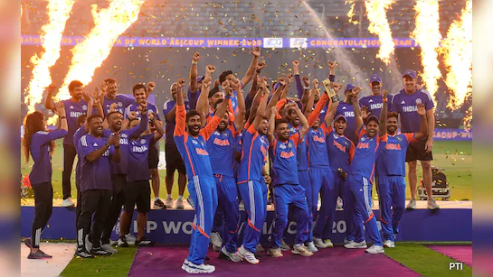 भारतीय टीम ने ट्रॉफी के बिना जश्न मनाया और फोटो खिंचवाई