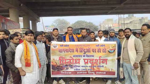 नई दिल्ली: विश्व हिंदू परिषद (विहिप) और बजरंग दल के सैकड़ों कार्यकर्ता बांग्लादेश में साम्प्रदायिकता के विरोध में मंगलवार को यहां पड़ोसी देश के उच्चायोग के बाहर सड़कों पर उतर आए, जिससे उच्च सुरक्षा वाले इस इलाके में अफरा-तफरी की स्थिति पैदा हो गयी। इससे पहले बांग्लादेश में एक हिंदू व्यक्ति की पीट-पीटकर हत्या किए जाने की घटना को लेकर विहिप और बजरंग दल के विरोध प्रदर्शन के मद्देनजर उच्चायोग के बाहर सुरक्षा बढ़ायी गयी थी। इलाके में तीन स्तर पर अवरोधक लगाए गए हैं और पुलिस तथा अर्द्धसैन्य बल की अतिरिक्त टुकड़ियों को तैनात किया गया है। पुलिस को प्रदर्शनकारियों को रोकने में काफी मशक्कत करनी पड़ी, क्योंकि वे अवरोधकों पर चढ़ने की कोशिश कर रहे थे। प्रदर्शनकारी नारे लगाकर और बैनर व पोस्टर दिखाकर बांग्लादेश सरकार की निंदा कर रहे थे। एक तख्ती में लिखा था, ‘‘हिंदू रक्त की एक-एक बूंद का हिसाब चाहिए।’’