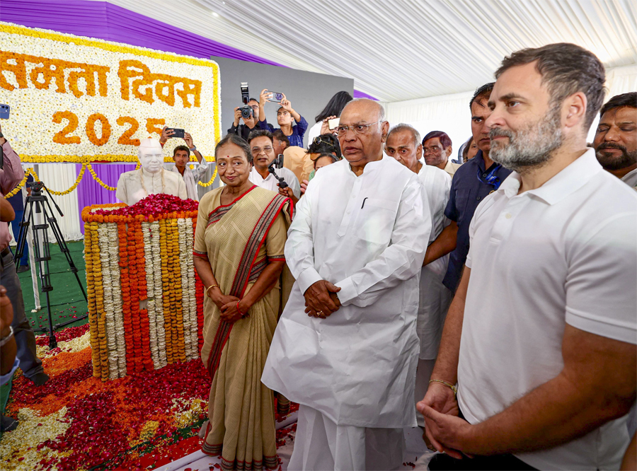 नई दिल्ली : कांग्रेस अध्यक्ष मल्लिकार्जुन खरगे, पूर्व अध्यक्ष राहुल गांधी और पार्टी के कई नेताओं ने पूर्व उप प्रधानमंत्री बाबू जगजीवन राम की जयंती पर शनिवार को उन्हें श्रद्धांजलि दी। खरगे, राहुल और पार्टी के कई नेताओं ने बाबू जगजीवन राम की समाधि स्थल पर पहुंचकर पुष्प अर्पित किए। इस दौरान उनकी पुत्री और लोकसभा की पूर्व अध्यक्ष मीरा कुमार भी उपस्थित थीं। बाबू जगजीवन राम की जयंती समता दिवस के रूप में मनाई जाती है। खरगे ने ‘एक्स’ पर पोस्ट किया, समता दिवस पर महान स्वतंत्रता सेनानी, सामाजिक न्याय के पुरोधा व पूर्व उपप्रधानमंत्री बाबू जगजीवन राम जी की जयंती पर उन्हें भावभीनी श्रद्धांजलि। उन्होंने कहा, समता के महानायक बाबू जी समाज के कमज़ोर, शोषित एवं पिछड़े वर्गों के उत्थान एवं उनके न्याय के लिए निःस्वार्थ भाव से संघर्षरत रहे और उन्होंने संसदीय लोकतंत्र की मजबूती के लिए अविस्मरणीय योगदान दिया। राहुल गांधी ने ‘एक्स’ पर पोस्ट में कहा, बाबू जगजीवन राम जी की जयंती पर उन्हें सादर नमन। बाबूजी ने अपना पूरा जीवन वंचितों, शोषितों और दलितों के अधिकारों के लिए समर्पित किया। उन्होंने उनके हक और भागीदारी को मजबूत कर देश के लोकतांत्रिक और संवैधानिक मूल्यों को मजबूती प्रदान की। राहुल गांधी ने यह भी कहा, उनके विचार और संघर्ष हमें हमेशा प्रेरणा देते रहेंगे।" जगजीवन राम का जन्म पांच अप्रैल 1908 को बिहार के शाहाबाद जिले (अब भोजपुर) के चंदवा गांव में हुआ था। उनका निधन छह जुलाई 1986 को हुआ।