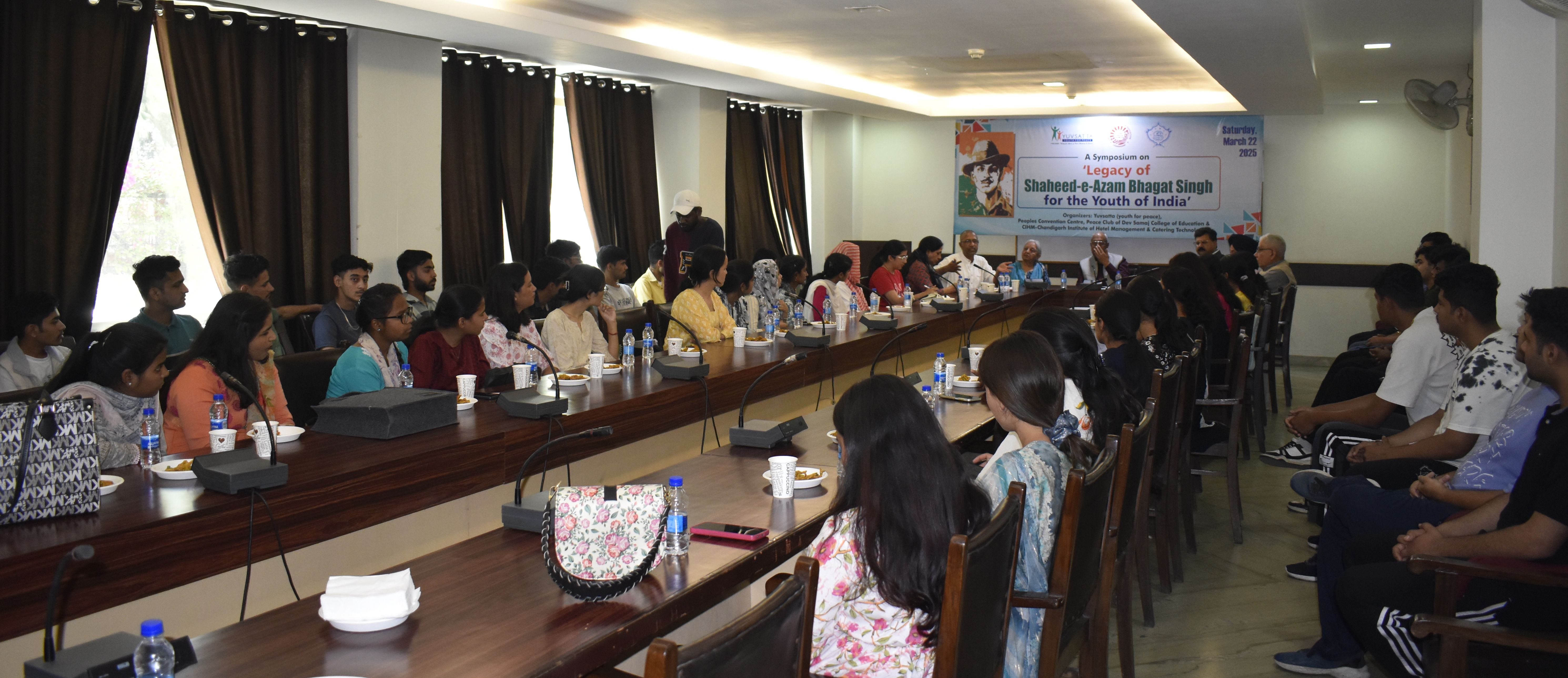 चंडीगढ़ : शहीद-ए-आजम भगत सिंह के शहीदी दिवस की पूर्व संध्या पर शनिवार को युवसत्ता, देव समाज कॉलेज ऑफ एजुकेशन, चंडीगढ़ इंस्टीट्यूट ऑफ होटल मैनेजमेंट एंड कैटरिंग टेक्नोलॉजी ने ‘भारत के युवाओं के लिए शहीद भगत सिंह की विरासत’ पर एक सिंपोजियम का आयोजन किया। सिंपोजियम में प्रमुख रूप से भाग लेने वालों में लेखक और यूनिस्टार बुक्स के निदेशक हरीश जैन, फेडरेशन ऑफ सेक्टर वेलफेयर एसोसिएशन ऑफ चंडीगढ़ (फॉसवेक) के अध्यक्ष बलजिंदर सिंह बिट्टू, देव समाज कॉलेज ऑफ एजुकेशन की प्रिंसिपल प्रो. ऋचा शर्मा, वरिष्ठ पत्रकार दीपक धीमान एवं शायदा बानो, पीपुल्स कन्वेंशन सेंटर एएस पॉल और प्रोफेसर गुरदेव कौर और युवसत्ता के संस्थापक प्रमोद शर्मा शामिल थे।