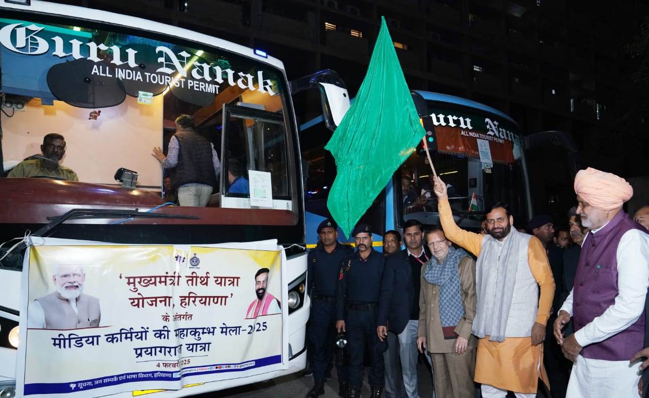 चंडीगढ़ : मुख्यमंत्री नायब सिंह सैनी ने महाकुंभ प्रयागराज के लिए मीडियाकर्मियों की 2 बसों को झंडी दिखाकर रवाना किया और उनकी सुरक्षित यात्रा की कामना की। उन्होंने मीडियाकर्मियों से बातचीत करते हुए कहा कि हरियाणा सरकार द्वारा जनता की सुविधा के लिए महाकुंभ प्रयागराज के लिए विशेष बसें चलाई जा रही हैं। इस दौरान मुख्यमंत्री नायब सैनी को भारतीय पत्रकार कल्याण मंच के अध्यक्ष पवन आश्री ने मीडिया कर्मियों की मांगों को लेकर मांग पत्र सौंपा। मुख्यमंत्री ने कहा कि प्रदेश सरकार की ओर से श्रद्धालुओं को मुख्यमंत्री तीर्थ दर्शन योजना के जरिए देश के महत्वपूर्ण तीर्थ स्थलों के दर्शन कराए जाते हैं। महाकुंभ मेले के दर्शन व पवित्र स्नान में शामिल होने के लिए वरिष्ठ नागरिकों की सुविधा हेतु राज्य सरकार ने मुख्यमंत्री तीर्थ दर्शन योजना का विस्तार करते हुए महाकुंभ को इस योजना में शामिल किया है। गणतंत्र दिवस के अवसर पर महाकुंभ के लिए पहले जत्थे को रवाना किया था। इस योजना के तहत प्रदेशभर से अब तक बड़ी संख्या में यात्री अयोध्या सहित अन्य तीर्थ स्थलों का भ्रमण कर चुके हैं। उल्लेखनीय है कि मुख्यमंत्री तीर्थ दर्शन योजना के अंतर्गत प्रदेश सरकार की ओर से 60 वर्ष से अधिक आयु के बुजुर्गों को मुफ्त तीर्थ यात्रा करवाई जाती है जिनकी पारिवारिक वार्षिक आय 1 लाख 80 हजार रुपये से कम होती है। श्रद्धालुओं को मुख्यमंत्री तीर्थ यात्रा योजना के सरल पोर्टल पर पंजीकरण करवाना अनिवार्य है। हरियाणा सरकार का उद्देश्य है कि गरीब परिवारों को भी देवस्थानों के दर्शन का लाभ मिले, इससे पवित्र कार्य कोई नहीं है। इस अवसर पर कृषि एवं किसान कल्याण मंत्री श्याम सिंह राणा, सहकारिता मंत्री डॉ. अरविन्द शर्मा और सूचना, जनसंपर्क, भाषा एवं संस्कृति विभाग के महानिदेशक के मकरंद पांडुरंग और मीडिया सचिव प्रवीण आत्रेय भी उपस्थित थे।