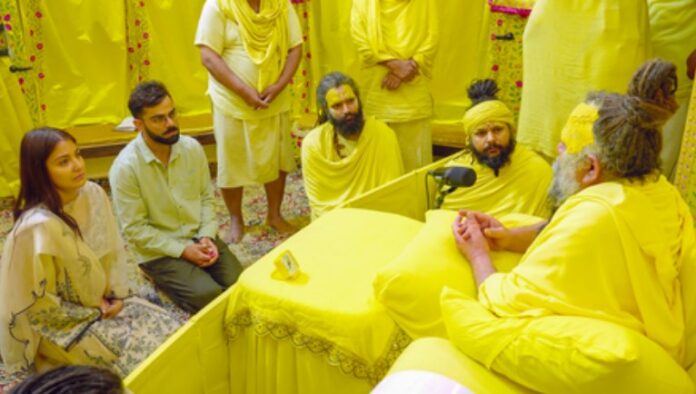 मथुरा : टेस्ट क्रिकेट से संन्यास लेने की घोषणा करने के बाद भारत के स्टार क्रिकेटर विराट कोहली अपनी अभिनेत्री पत्नी अनुष्का शर्मा के साथ अध्यात्मिक गुरू प्रेमानंद गोविंद शरण जी महाराज के दर्शन करने वृंदावन पहुंचे। वे आश्रम में करीब साढे तीन घंटे रुकने बाद लगभग पौने दस बजे वापस हो गए। एक्स पर साझा किये गए वीडियो में विराट और अनुष्का को संत से आशीर्वाद लेते देखा जा सकता है। इस क्लिप में विराट और अनुष्का को प्रेमानंद जी महाराज से बात करते देखा गया जिसमें उन्होंने विराट से पूछा कि क्या वह खुश है। विराट ने एक दिन पहले ही सोमवार को टेस्ट क्रिकेट को अलविदा कहा था और अगले ही दिन वह वृंदावन पहुंचे। इससे पूर्व वह इसी वर्ष10 जनवरी को और दो साल पहले (2023 में) चार जनवरी को भी आश्रम में उनसे आशीर्वाद प्राप्त करने आ चुके हैं। आश्रम के सूत्रो के अनुसार वह मंगलवार तड़के ही आश्रम पहुंच गए थे और करीब साढे तीन घण्टे ठहरने के बाद लौट गए। जब वे यहां इनोवा में पहुंचे, तब दोनों मुंह पर मास्क लगाए हुए थे। सूत्रों ने बताया कि उन्होंने संत प्रेमानंद से भेंट करने के बाद आश्रम का भ्रमण कर वहां संचालित प्रकल्पों के बारें में भी जानकारी हासिल की। उन्होंने लौटने से पूर्व वाराह घाट पर कुछ ही दूर स्थित संत प्रेमानंद के भी गुरू गौरांगी शरण महाराज के भी दर्शन किए।