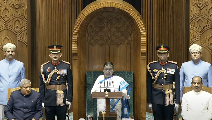 मुर्मू ने कहा कि दूर-चिकित्सा (टेली मेडिसिन) के माध्यम से तीस करोड़ से अधिक ई–टेली वार्ताओं से नागरिकों को स्वास्थ्य लाभ मिला है। उन्होंने कहा कि सरकार अगले पांच साल में देश के मेडिकल कॉलेजों में पचहत्तर हज़ार नई सीटों के सृजन के लिए भी काम कर रही है। मुर्मू ने कहा कि सरकार स्वास्थ्य अवसंरचना और मेडिकल उपकरण विनिर्माण को बढ़ावा दे रही है और देश में नए बल्क ड्रग और मेडिकल उपकरण के पार्क बनने से रोजगार के अनेक नए अवसर उपलब्ध हो रहे हैं। राष्ट्रपति ने कहा कि आयुष्मान भारत योजना के अंतर्गत 70 वर्ष और उससे अधिक उम्र के छह करोड़ वरिष्ठ नागरिकों को स्वास्थ्य बीमा देने का फैसला हुआ है, और उन्हें हर वर्ष पांच लाख रुपये का हेल्थ कवर मिलेगा।
