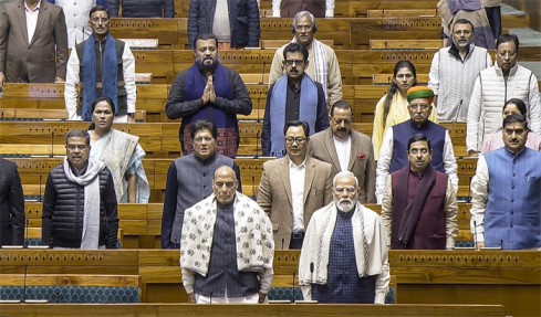 नई दिल्ली: अठारहवीं लोकसभा के छठे सत्र की कार्यवाही शुक्रवार को अनिश्चितकाल के लिए स्थगित कर दी गई। गत एक दिसंबर को शुरू हुए इस सत्र में सदन की कार्य उत्पादकता 111 प्रतिशत रही और आठ सरकारी विधेयक पारित किए गए। लोकसभा अध्यक्ष ओम बिरला ने कहा कि इस सत्र में 15 बैठकें हुईं जो 92 घंटे 25 मिनट तक चलीं। उन्होंने अपने संक्षिप्त उल्लेख में सदस्यों को संबोधित करते हुए कहा, ‘‘आप सभी के सहयोग से इस सत्र में सभा की कार्य उत्पादकता लगभग 111 प्रतिशत रही।’’ इस दौरान सदन में प्रधानमंत्री नरेन्द्र मोदी, रक्षा मंत्री राजनाथ सिंह और संसदीय कार्य मंत्री किरेन रीजीजू उपस्थित थे। अठारहवीं लोकसभा के छठे सत्र में कुल 10 सरकारी विधेयक पेश किए गए और सदन ने आठ सरकारी विधेयकों को मंजूरी दी। इनमें महात्मा गांधी राष्ट्रीय ग्रामीण रोजगार गारंटी अधिनियम (मनरेगा) की जगह लेने के लिए लाया गया ‘विकसित भारत-जी राम जी विधेयक, 2025’ शामिल है जिसे लेकर विपक्ष ने भारी विरोध दर्ज कराया।