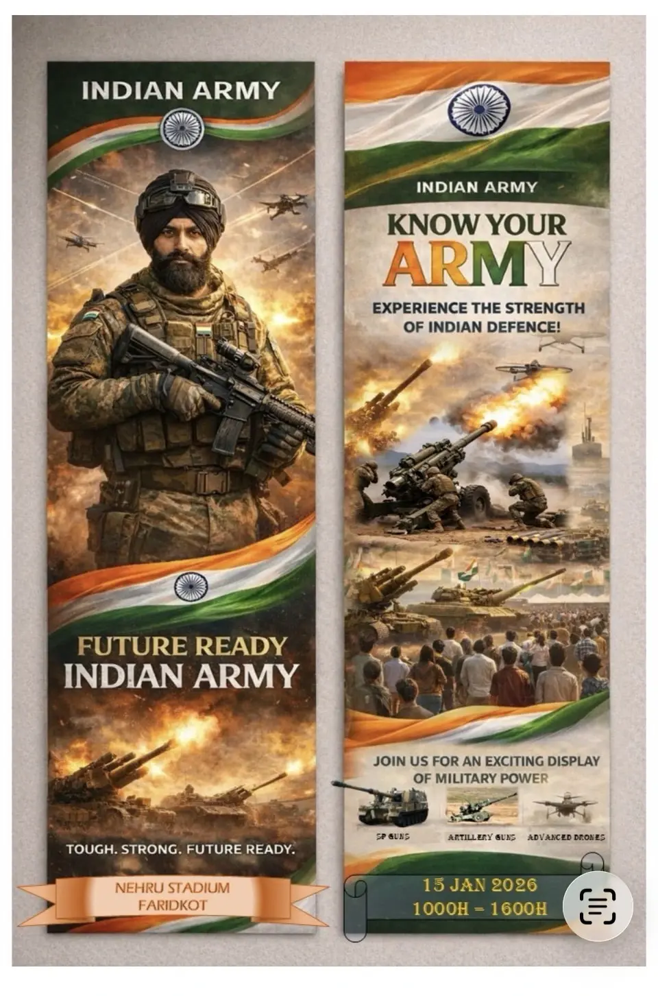 फरीदकोट: भारतीय सेना के गौरवशाली इतिहास और उसकी आधुनिक सैन्य शक्ति से रूबरू होने का फरीदकोट वासियों के लिए सुनहरा अवसर है। आगामी 15 जनवरी, 2026 को शहर के नेहरू स्टेडियम में "अपनी सेना को जानें" (Know Your Army) अभियान के तहत एक विशाल सैन्य प्रदर्शनी का आयोजन किया जा रहा है। इस आयोजन का मुख्य उद्देश्य आम नागरिकों, विशेषकर युवाओं को सेना की ताकत से परिचित करवाना और उन्हें राष्ट्र सेवा के प्रति प्रेरित करना है। 'स्ट्रॉन्ग, पावरफुल, फ्यूचर रेडी' थीम पर आधारित यह प्रदर्शनी सुबह 10 बजे से शाम 4 बजे तक चलेगी।