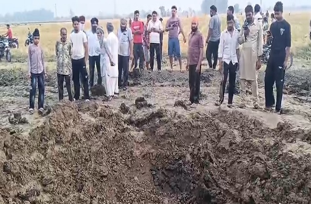 फगवाड़ा : फगवाड़ा जिले के खलयान और साहनी गांवों के बीच शनिवार को तड़के एक खेत में अज्ञात वस्तु गिरी। अधिकारियों ने यह जानकारी दी। स्थानीय लोगों ने बताया कि खलयान गांव में मेजर सिंह के खेतों से आधी रात को दो बजकर 40 मिनट पर विस्फोट जैसी आवाज सुनाई दी थी। अधिकारियों ने बताया कि अज्ञात वस्तु के टकराने से खेत में करीब सात से आठ फुट गहरा और 12 से 14 फुट चौड़ा गड्ढा हो गया। अज्ञात वस्तु के कुछ हिस्से खेत में बिखरे पड़े मिले। स्थानीय लोगों ने बताया कि प्रक्षेपास्त्र गिरने के बाद गेहूं के भूसे में भी आग लग गई, जिसे दमकलकर्मियों ने बुझा दिया। इस घटना में किसी के हताहत होने की सूचना नहीं है। अतिरिक्त उपायुक्त अक्षिता गुप्ता ने बताया कि शनिवार को फगवाड़ा शहर में मेडिकल स्टोर को छोड़कर सभी बाजार बंद रखने के लिए परामर्श जारी किया गया। अधिकारियों ने बताया कि जिले के बाकी हिस्सों में मॉल और ऊंची व्यावसायिक इमारतें भी बंद रहेंगी।