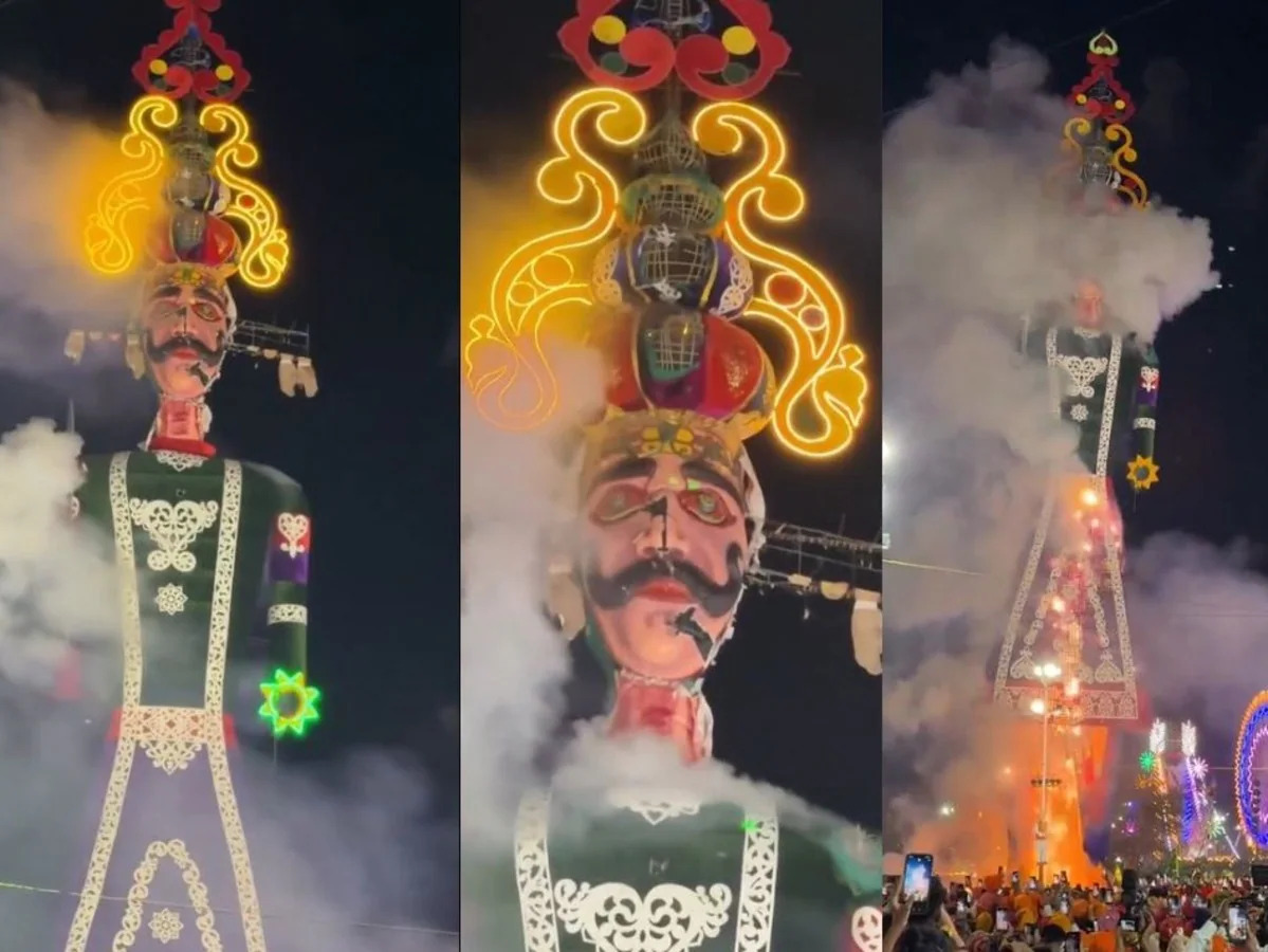 कोटा: राजस्थान के कोटा शहर में दशहरा मैदान में बृहस्पतिवार को रावण के 233 फुट ऊंचे पुतले का दहन कर 'विश्व रिकॉर्ड' बनाया गया। कोटा से तीन बार के सांसद एवं लोकसभा अध्यक्ष ओम बिरला तथा राजस्थान के मुख्यमंत्री भजनलाल शर्मा ने यहां एक भव्य समारोह में 132वें राष्ट्रीय दशहरा मेले का उद्घाटन किया। इसके बाद, रावण के विशाल पुतले के साथ-साथ दोनों ओर 60 फुट ऊंचे कुंभकर्ण और मेघनाथ के पुतलों का दहन भी किया गया। कोटा के पूर्व राजपरिवार के मुखिया इज्यराज सिंह द्वारा छोड़े गए तीर से पुतलों को आग लगाई गई। वह भगवान लक्ष्मीनारायण की शोभायात्रा का नेतृत्व करते हुए दशहरा मैदान पहुंचे थे।