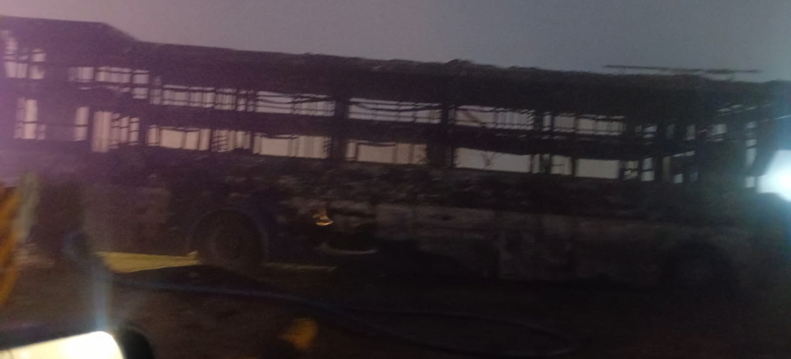 ट्रक से टक्कर होते ही उसमें भरे चारे ने आग पकड़ ली, जो तेजी से फैलते हुए बस तक पहुंच गई। मौके पर मौजूद हेड कॉन्स्टेबल बलवीर सिंह काजला ने बताया कि आग लगते ही बस में अफरा-तफरी मच गई, लेकिन चालक और स्टाफ की सूझबूझ से यात्रियों को तुरंत बाहर निकालने की प्रक्रिया शुरू कर दी गई। बस के दो इमरजेंसी गेट और मुख्य गेट के जरिए सभी यात्रियों को सुरक्षित बाहर निकाल लिया गया। हादसे के बाद नेशनल हाईवे पर करीब दो घंटे तक यातायात पूरी तरह बाधित रहा। आग इतनी भीषण थी कि बस कुछ ही देर में जलकर कबाड़ हो गई। बस में सवार यात्रियों का सारा सामान भी आग की भेंट चढ़ गया। सूचना मिलने पर फायर ब्रिगेड की कई गाड़ियां मौके पर पहुंचीं और कड़ी मशक्कत के बाद आग पर काबू पाया गया।