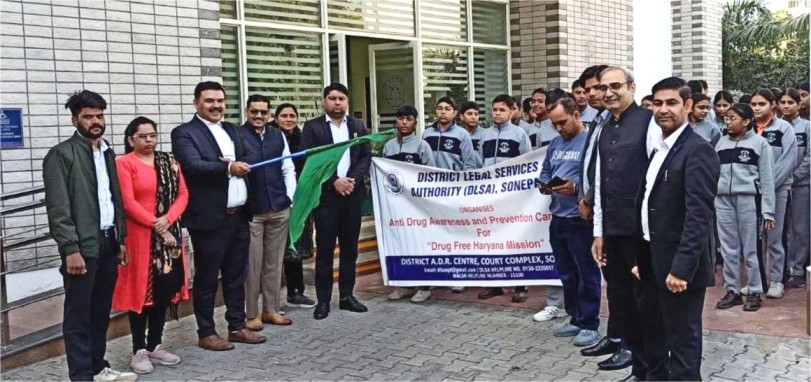 सोनीपत: हरियाणा राज्य विधिक सेवा प्राधिकरण, पंचकूला के दिशा-निर्देशों के अनुरूप जिला विधिक सेवा प्राधिकरण (डीएलएसए) सोनीपत की तरफ से शनिवार को नशा मुक्त हरियाणा मिशन के तहत एक एंटी ड्रग जागरूकता एवं रोकथाम रैली का आयोजन किया गया। यह रैली जिला एडीआर सेंटर जिला न्यायालय परिसर सोनीपत से प्रारंभ होकर प्रमुख मार्गों से होती हुई छोटू राम चौक तक पहुंची। रैली का संचालन डीएवी पुलिस पब्लिक स्कूल के सहयोग से किया गया जिसमें विद्यालय के 60 छात्र-छात्राओं ने उत्साहपूर्वक भाग लिया। विद्यार्थियों ने 'से नो टू ड्रग्स', 'नशा छोड़ो जीवन जोड़ो', 'नशीले पदार्थों का उन्मूलन-हमारी जिम्मेदारी' और 'एक कदम नशा-मुक्ति की ओर' जैसे नारों के माध्यम से राहगीरों एवं स्थानीय नागरिकों को नशा निवारण का संदेश दिया। जागरूकता रैली को मुख्य विधिक सहायता प्रतिरक्षा वकील जिला विधिक सेवा प्राधिकरण ने हरी झंडी दिखाकर रवाना किया।