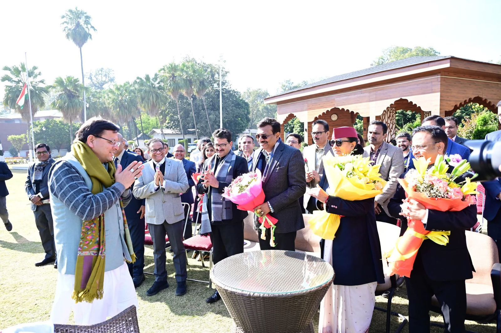 देहरादेन : मुख्यमंत्री पुष्कर सिंह धामी से नववर्ष के अवसर पर मुख्यमंत्री आवास में कैबिनेट मंत्री गणेश जोशी, विधायकगणों, भारतीय प्रशासनिक सेवा के वरिष्ठ अधिकारियों, भारतीय पुलिस सेवा के अधिकारियों, भारतीय वन सेवा के अधिकारियों, प्रान्तीय सेवा के अधिकारियों एवं प्रदेश के विभिन्न क्षेत्रों से आये लोगों ने भेंट कर नव वर्ष की शुभकामनाएं दी। मुख्यमंत्री ने नव वर्ष की शुभकामनाएं देते हुए सभी के मंगलमय जीवन की कामना की है। मुख्यमंत्री ने कहा कि नव वर्ष पर हमें नए संकल्प के साथ आगे बढ़ना है। उन्होंने कहा कि सभी प्रदेशवासियों के योगदान से उत्तराखण्ड को देश का अग्रणी राज्य बनाया जायेगा। उन्होंने सभी से राज्य के विकास में सहयोगी बनने की भी अपेक्षा की।