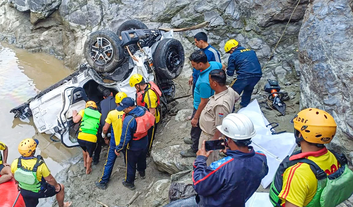 रुद्रप्रयाग : उत्तराखंड में बदरीनाथ राष्ट्रीय राजमार्ग पर रुद्रप्रयाग और गौचर के बीच घोलतीर गांव के पास बृहस्पतिवार तड़के तीर्थयात्रियों से भरी एक मिनी बस दुर्घटनाग्रस्त होकर अलकनंदा नदी में जा गिरी जिसमें दो व्यक्तियों की मौत हो गई तथा 10 अन्य लापता हैं। पुलिस अधीक्षक कार्यालय से मिली जानकारी के अनुसार, घटना में आठ लोग घायल भी हुए हैं। वाहन में राजस्थान के उदयपुर का एक परिवार भी था जो चारधाम यात्रा पर आया था। घटना की खबर मिलते ही पुलिस तथा राज्य आपदा प्रतिवादन बल मौके पर पहुंचे और राहत एवं बचाव अभियान शुरू किया। कुल 31 यात्रियों की क्षमता वाली मिनी बस में, हादसे के समय चालक समेत 20 श्रद्धालु सवार थे और वह बदरीनाथ धाम की ओर जा रही थी । बचाव दलों ने बताया कि हादसे के दौरान वाहन में सवार कुछ श्रद्धालु पहाड़ी पर ही छिटक कर घायल हो गए थे जिन्हें उपचार के लिए निकटवर्ती अस्पताल भेजा गया है। उन्होंने बताया कि घटनास्थल से दो व्यक्तियों के शव बरामद किए गए हैं जबकि 10 यात्री नदी में समा गई मिनी बस के साथ ही लापता हो गए। राहत एवं बचाव कार्यों में नदी का तेज बहाव चुनौती बना हुआ है लेकिन बचाव दल स्थानीय लोगों के साथ मिलकर लगातार श्रद्धालुओं की खोजबीन कर रहे हैं।